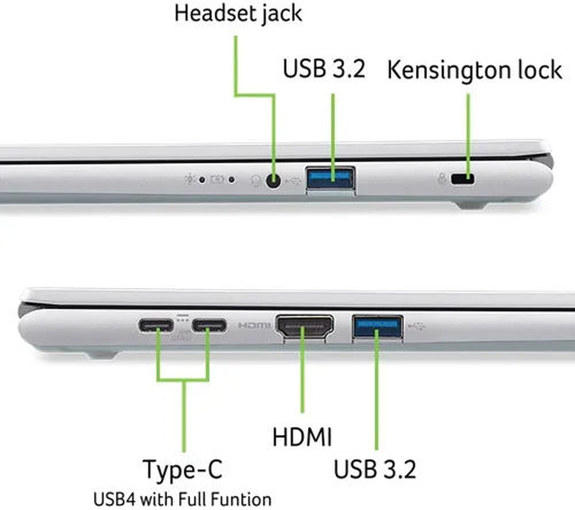 Le PC Acer dispose d'un seul et unique port USB-C. Cependant, celui-ci n'est pas compatible avec la technologie Thunderbolt proposée par Intel.