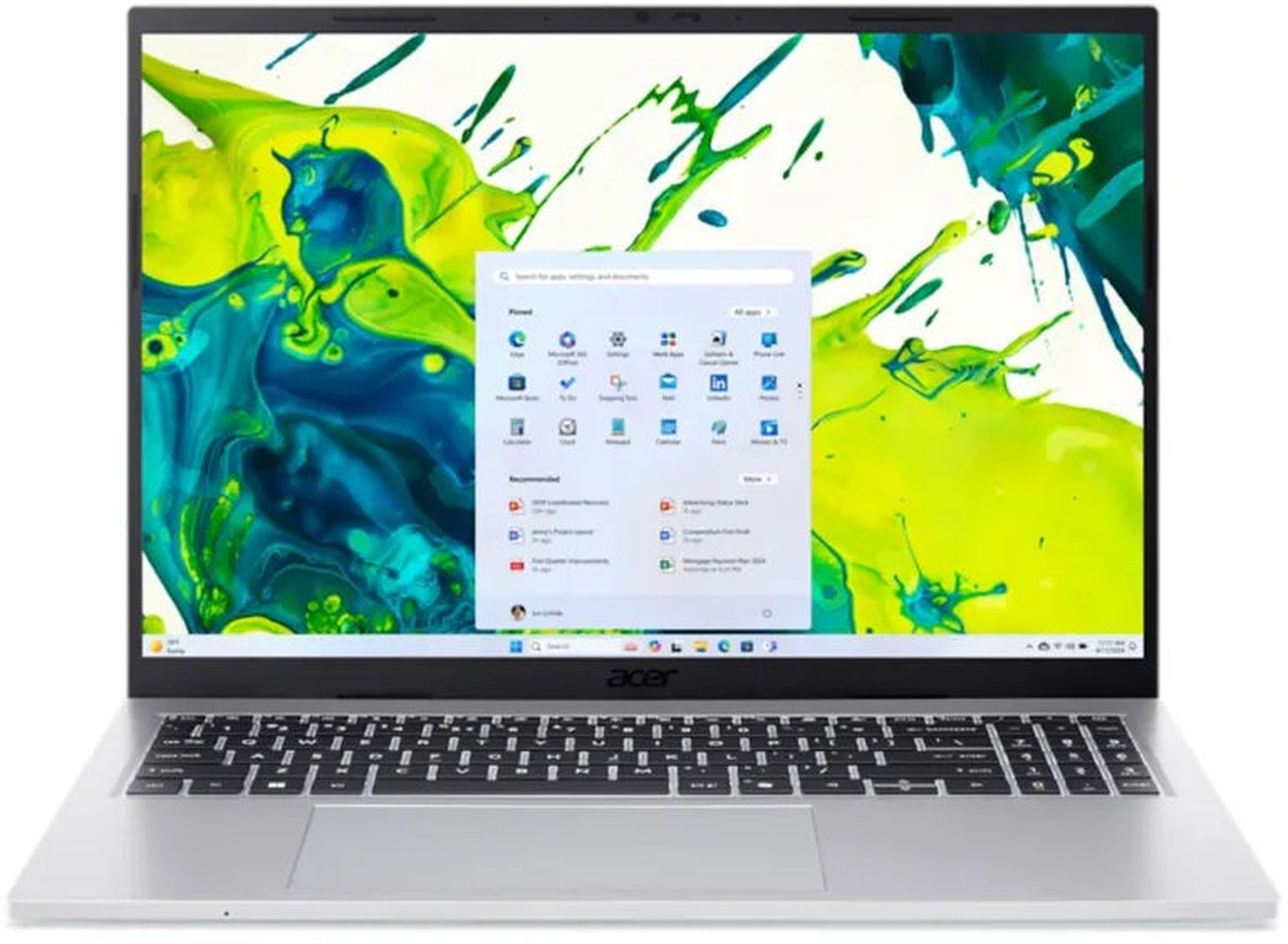 Photo : vue de face, pratique pour se faire une idée du format 16 pouces de l’Acer Aspire Go 16 AG16-71P-91ZT.