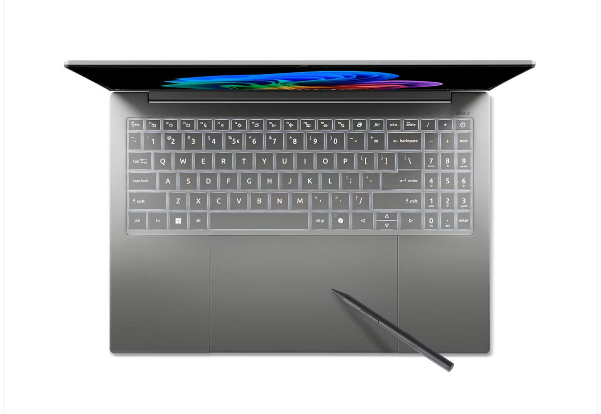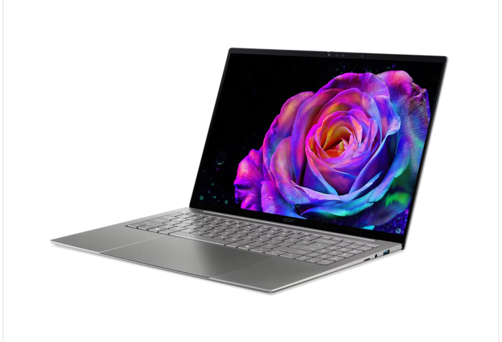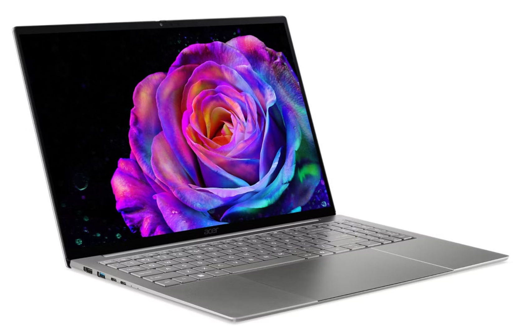 Acer utilise sur cette référence une dalle OLED avec un taux de rafraîchissement de 120 Hz. La luminosité maximale est annoncée à 340 cd/m². L'écran propose des angles de vision de 178°. La dalle couvre également l'espace colorimétrique plus étendu du DCI-P3 à 100% pour un rendu parfait des couleurs.