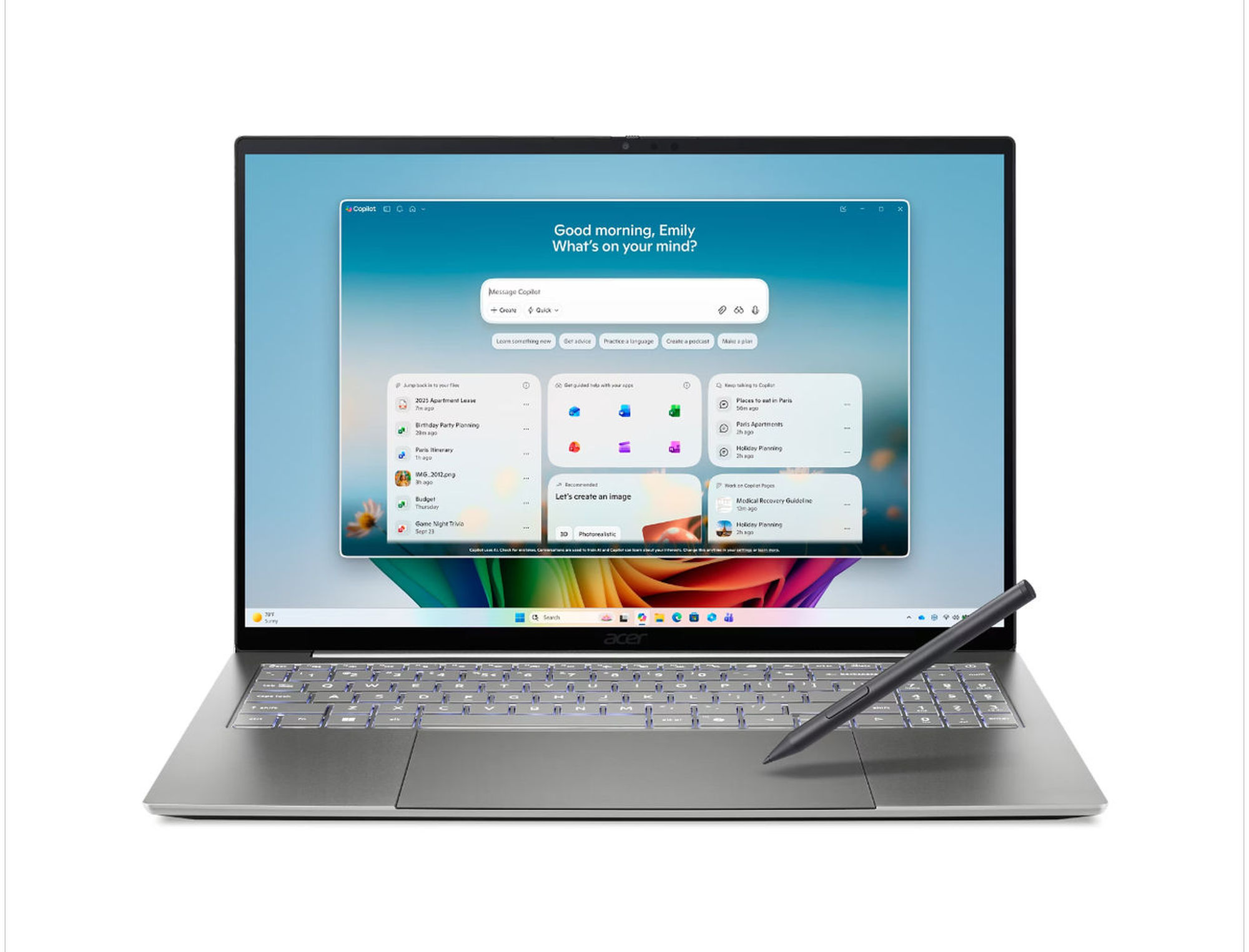 Le PC Acer Swift 16 AI SF16-71T-99D5 possède une taille d'écran de 16.0 pouces équivalent à une diagonale de 40,64 cm.