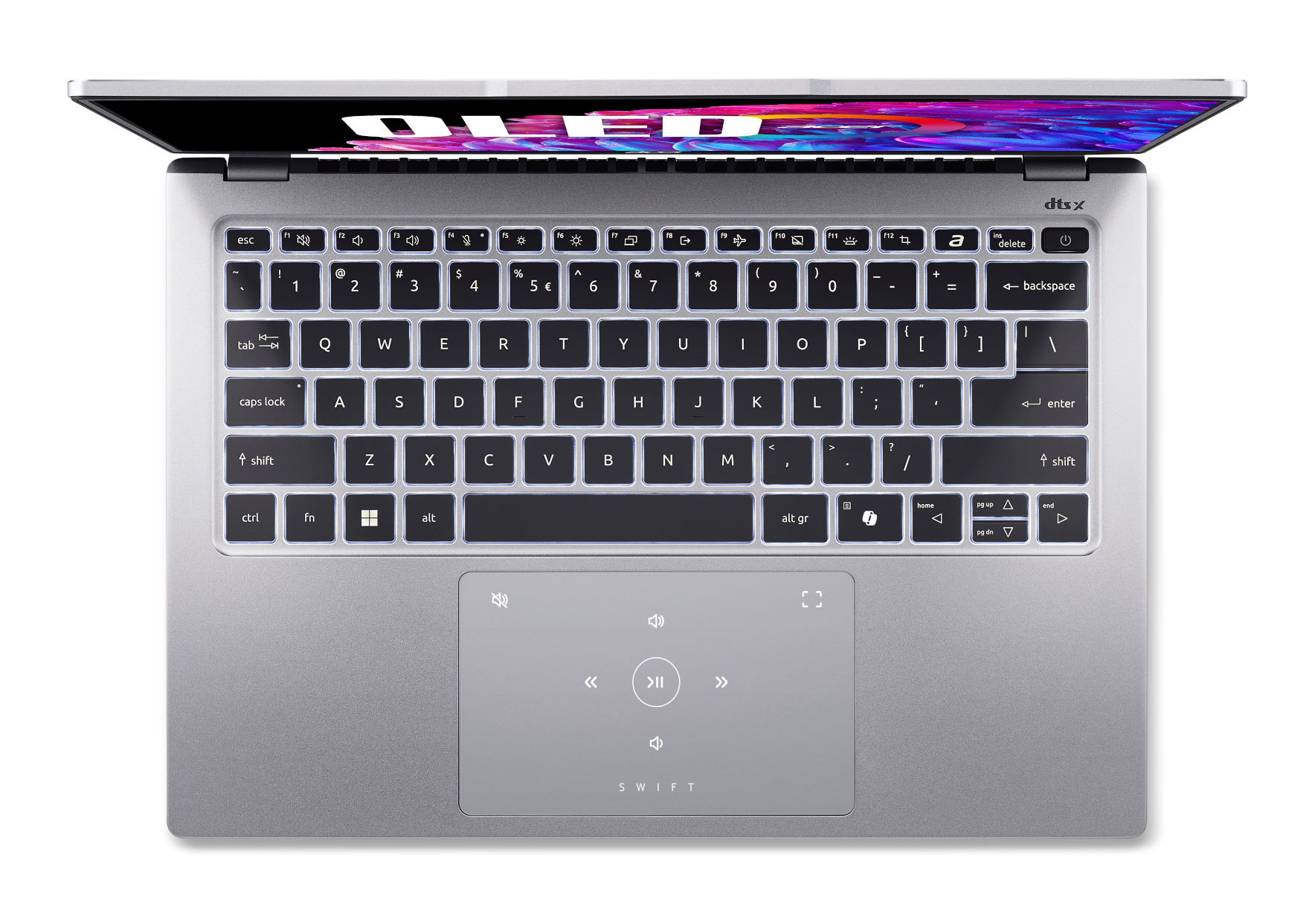 Acer utilise sur cette référence une dalle OLED avec un taux de rafraîchissement de 90 Hz. La luminosité maximale est annoncée à 500 cd/m². L'écran propose des angles de vision de 178°. La dalle couvre également l'espace colorimétrique plus étendu du DCI-P3 à 100% pour un rendu parfait des couleurs. L'écran est également certifié VESA DisplayHDR 500 True Black.