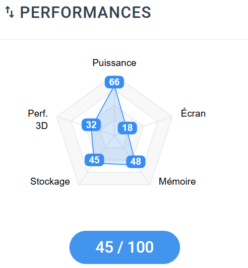 ▸ Ce que la note raconte vraiment : avec 45/100 en performance brute mais 5,0/10 en rapport performances / prix, la machine apparaît correcte sans être franchement agressive au tarif affiché.