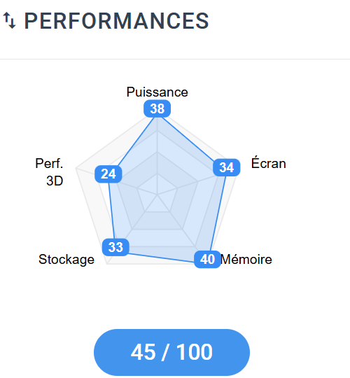 ▸ Ce que la note raconte vraiment : avec 45/100 en performance brute mais seulement 4.7/10 en rapport performances / prix, il n’est pas mal configuré pour de la bureautique moderne, mais il ne paraît pas particulièrement agressif au tarif affiché.