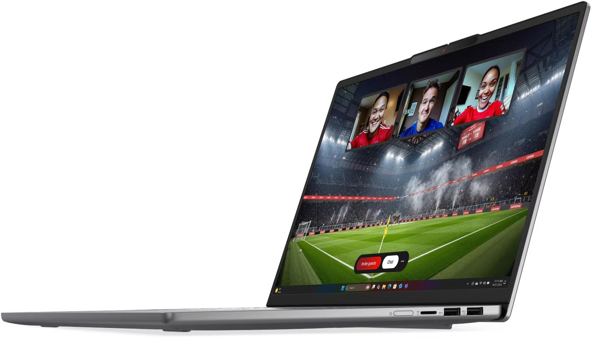 Lenovo utilise sur cette référence une dalle OLED avec un taux de rafraîchissement de 60 Hz. La luminosité maximale est annoncée à 300 cd/m². L'écran propose des angles de vision de 178°. La dalle couvre également l'espace colorimétrique plus étendu du DCI-P3 à 100% pour un rendu parfait des couleurs.